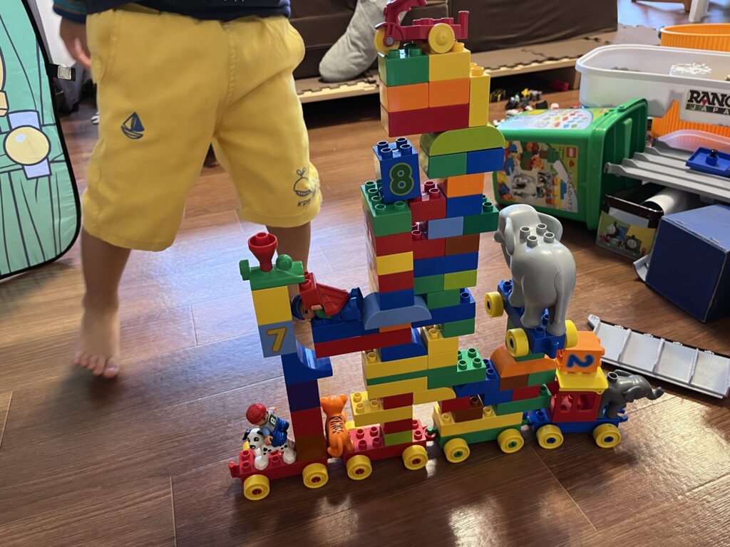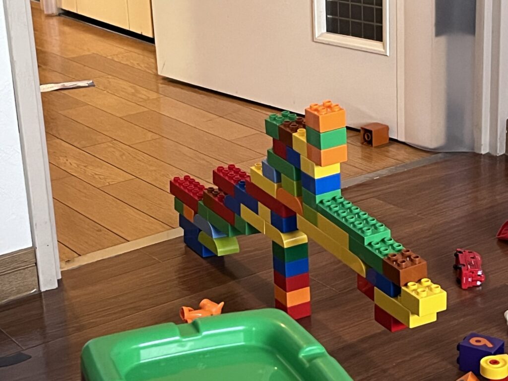 最近の息子のブロック遊びは、どんどん複雑化しています。私はブロックが大の苦手なので、どうしていいか分かりません。よく作れるなぁ…と感心。
