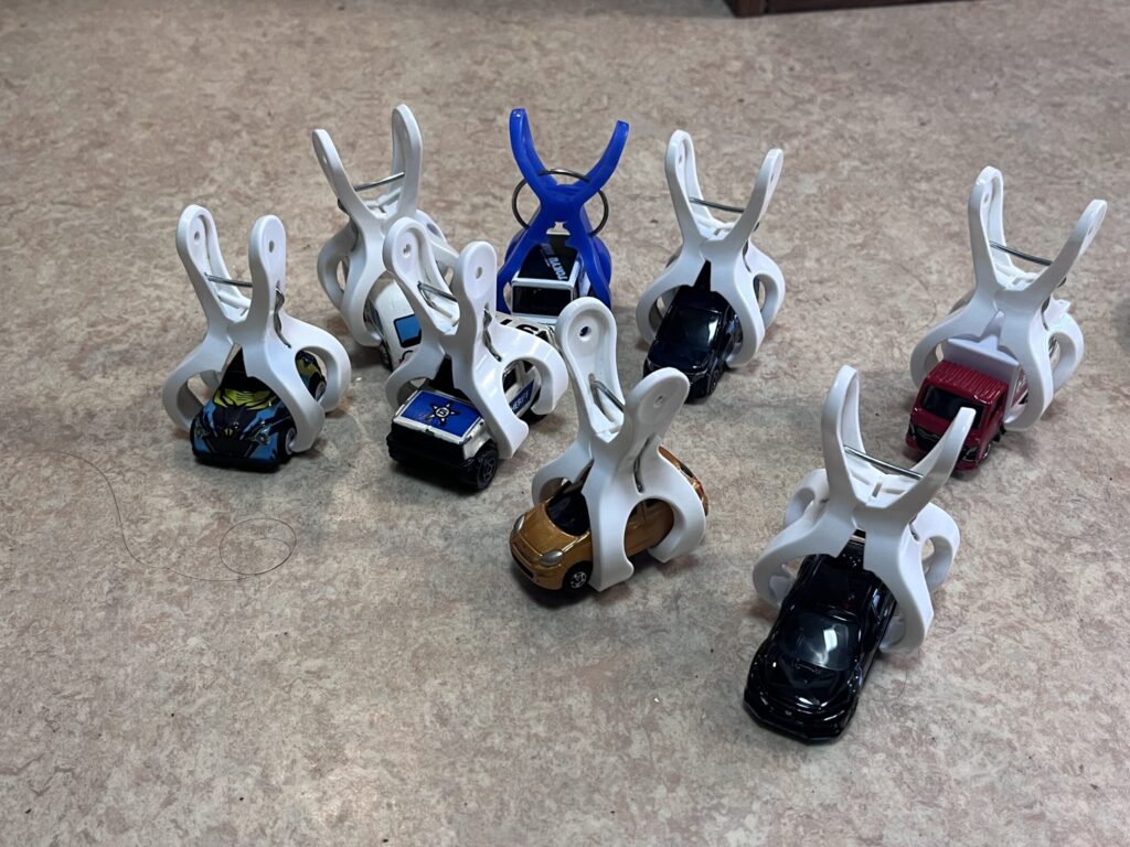 洗濯ばさみも好きです。洗濯物のタオル畳みもハマっています。お手伝いというより、真似っこ遊びがなのでしょうが、良いことなので、極力手伝ってもらってます。が、ハタキや掃除機やらも逐一付き合っていると、午前中が終わります。わー…笑